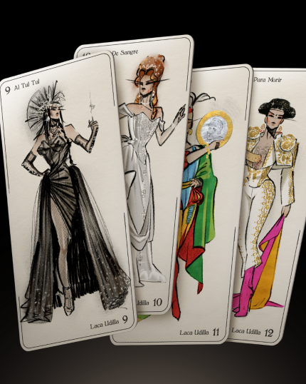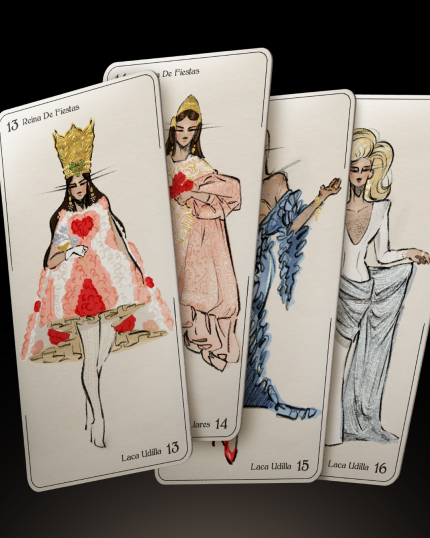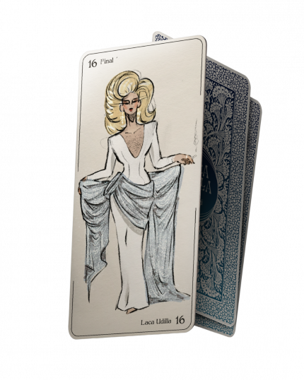 Carta tarot de Laca Udillaconcursante de Drag Race España temporada cinco. Maric*nes franco a muerto,bienvenidos al regimen de Laca Udilla. Tamaño 7x14.