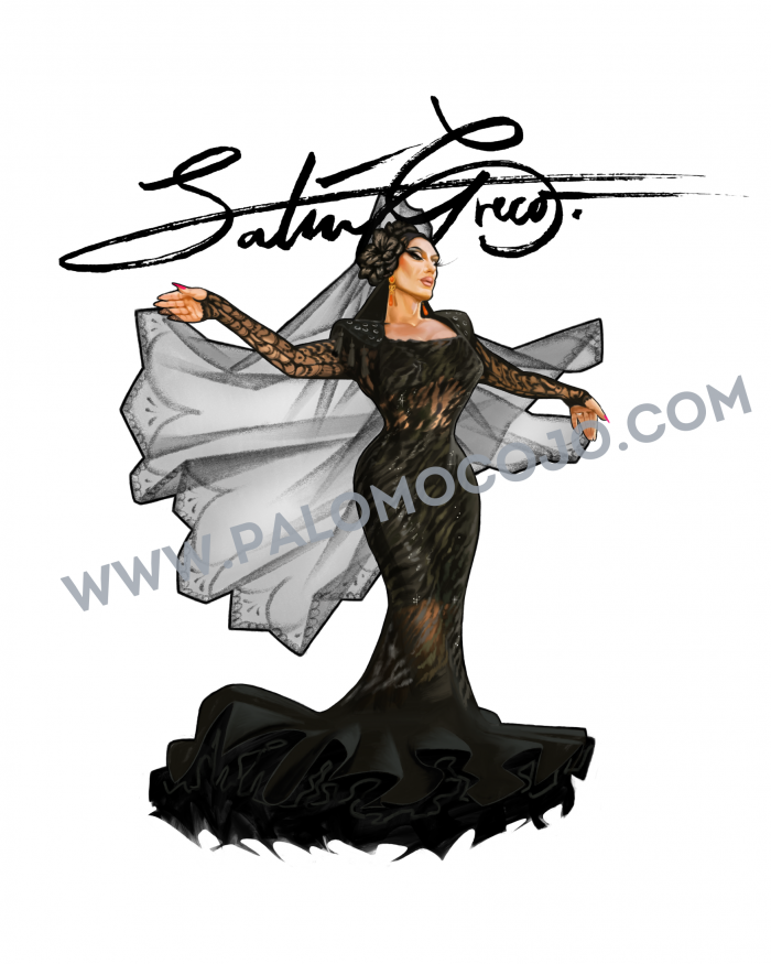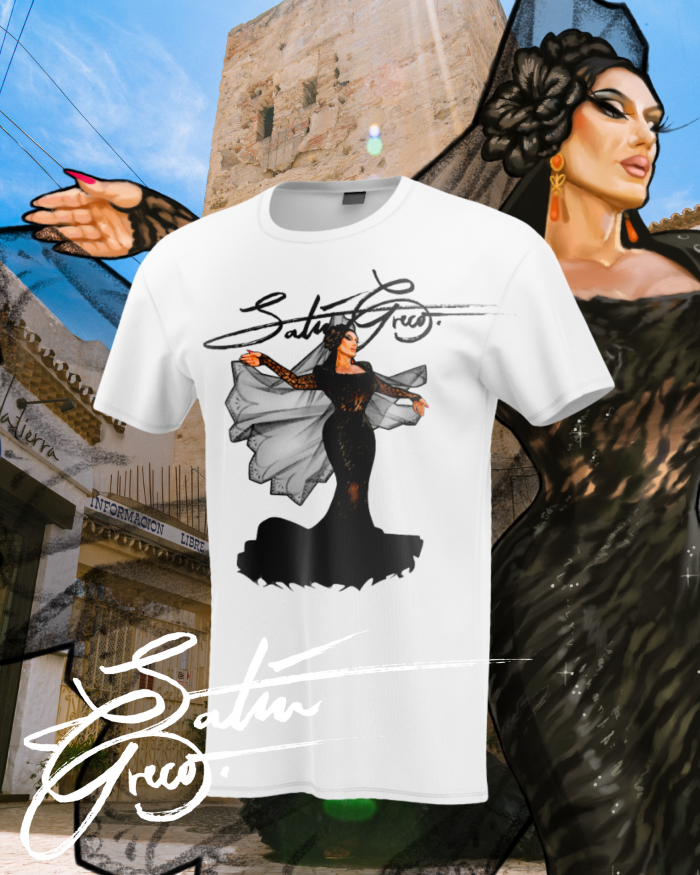 Madre Greco ha llegado a Drag Race España temporada cinco. Camiseta oficial 100% algodón en la tienda de Palomocojo. Consulta el tallaje más abajo.