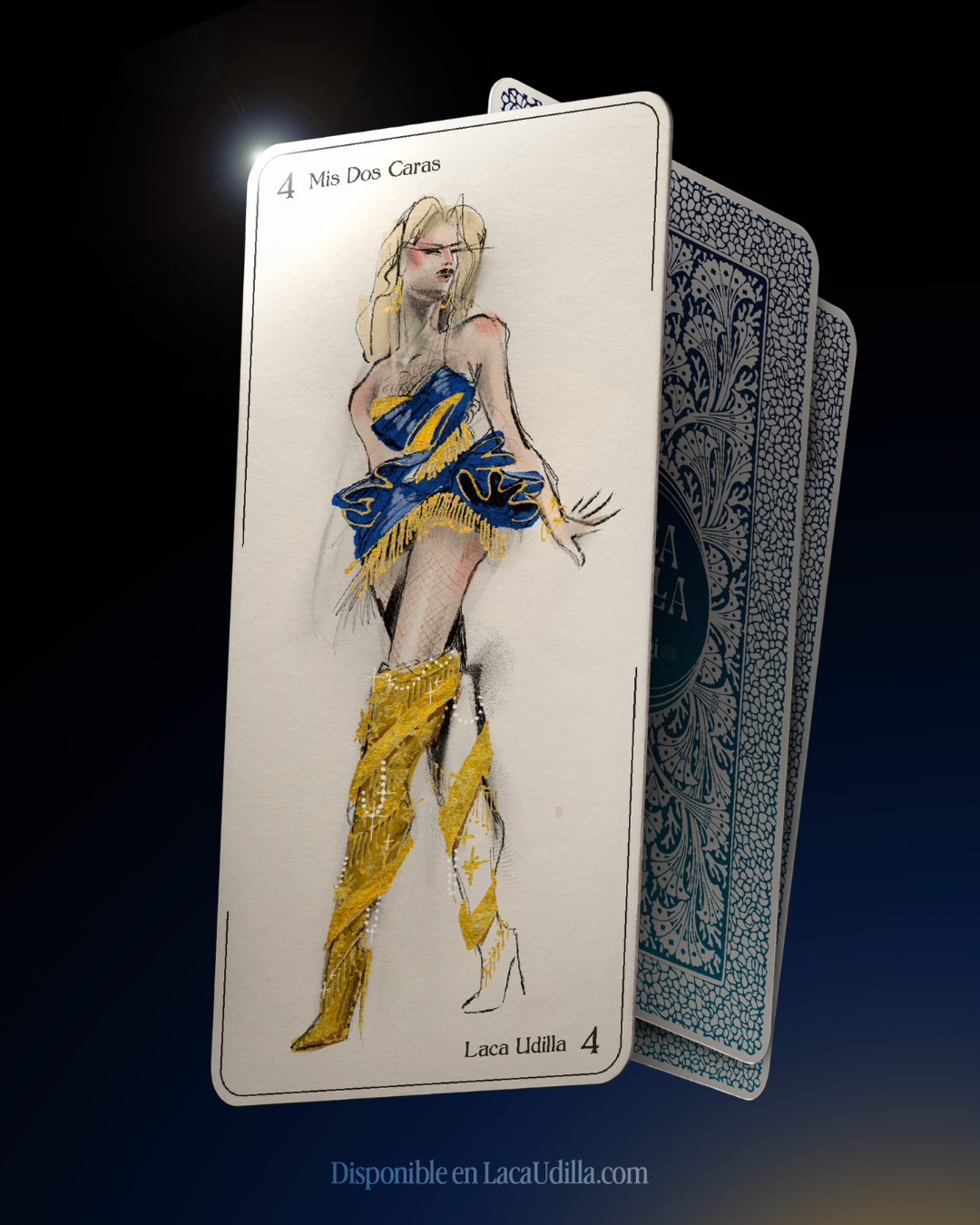 Carta tarot de Laca Udillaconcursante de Drag Race España temporada cinco. Como una ola por arriba y el titranic por abajo. Tamaño 7×14.