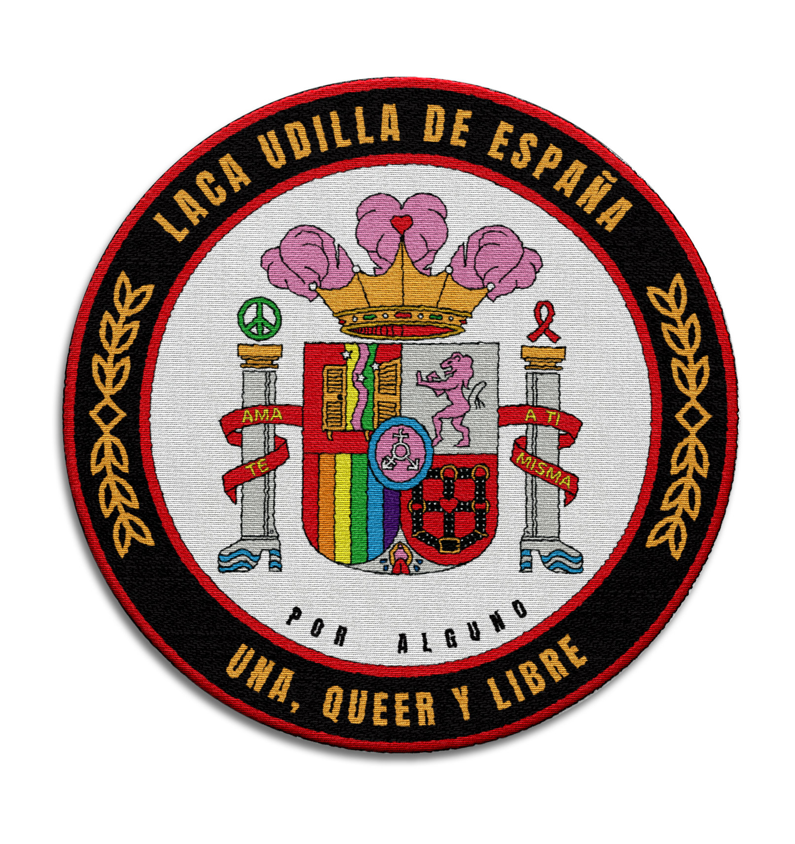 Parche negro de Laca Udilla concursante de Drag Race España temporada cinco. La insignia que te mereces! Se la mas española y la mas queer con este parche diseñado por David Alguno. Tamaño 8x8.
